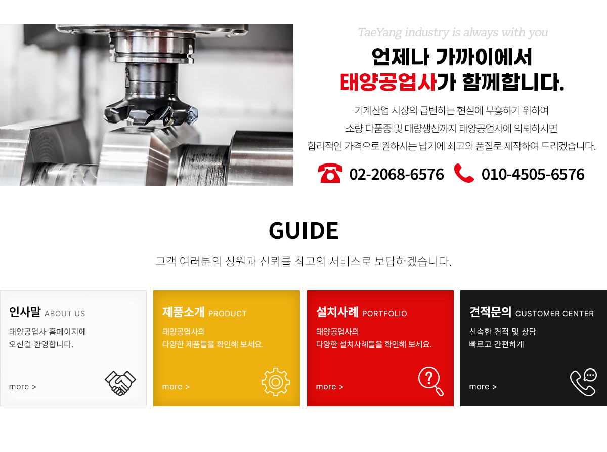 태양공업사는 각종 산업기계 제작 및 수리업체로서 탱크, 일반배관 및 스니타리니CIP, 스테인레스, 식품제약, 산업기계, 조형물, 알곤용접 등을 취급하고 있습니다.